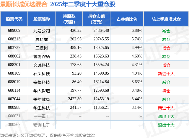 根据2025基金半年报公募基金重仓股数据,重仓该股的公募基金共23家,其中持有数量最多的公募基金为景顺长城基金的景顺长城优选混合。景顺长城优选混合目前规模为36.15亿元,最新净值4.2463(8月14日),较上一交易日下跌1.69%,近一年上涨47.24%。该公募基金现任基金经理为杨锐文。杨锐文在任的基金产品包括:景顺长城环保优势股票,管理时间为2016年3月15日至今,期间收益率为262.3%;景顺长城创新成长混合,管理时间为2019年10月17日至今,期间收益率为85.4%;景顺长城成长领航混合,管理时间为2020年5月28日至今,期间收益率为54.99%。